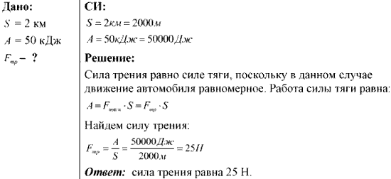 Работа силы тяги автомобиля, прошедшего с неизменной скоростью путь 2 км, равна 50 кДж. Определите силу трения.