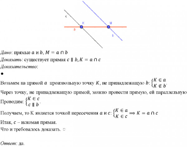 Прямые а и b пересекаются. Можно ли провести такую прямую, которая пересекает прямую а и параллельна прямой b? Ответ обоснуйте.