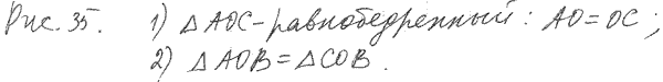 На рисунке 35 ∠OAC = ∠OCA, ∠AOB = ∠COB. Докажите, что △АОВ = △СОВ.